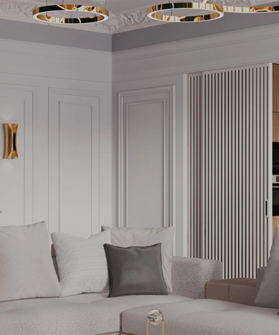 • Не мешает открыванию мебельных фасадов, если они находятся за межкомнатной дверью.