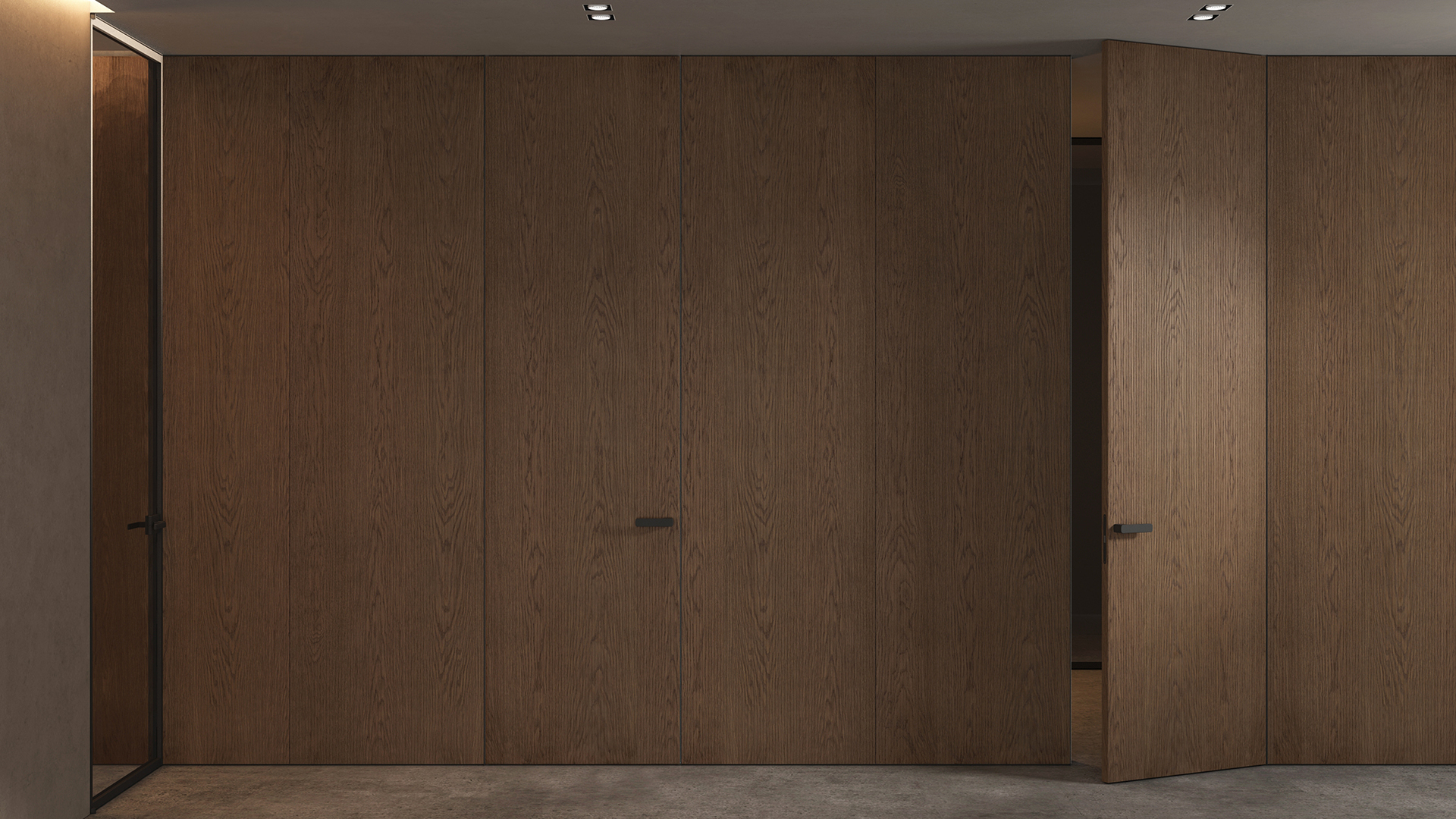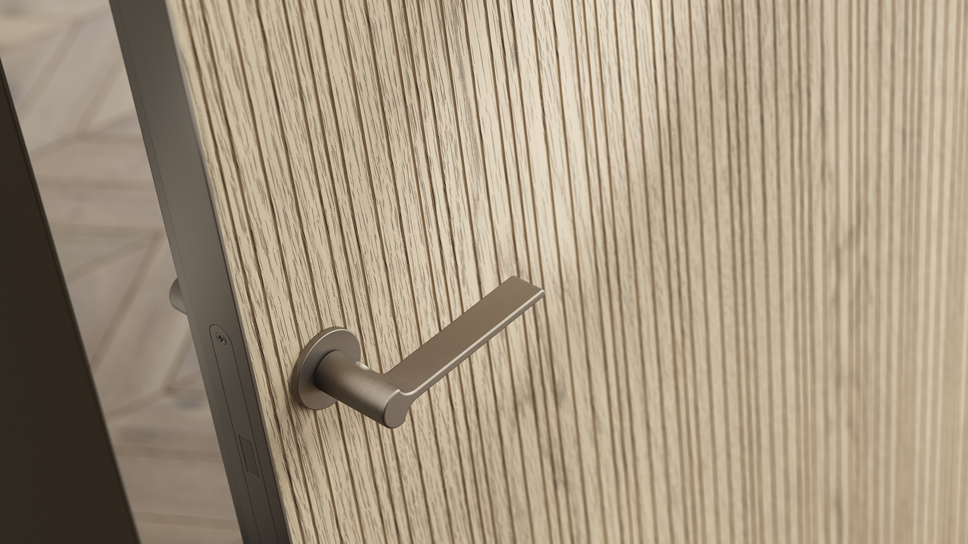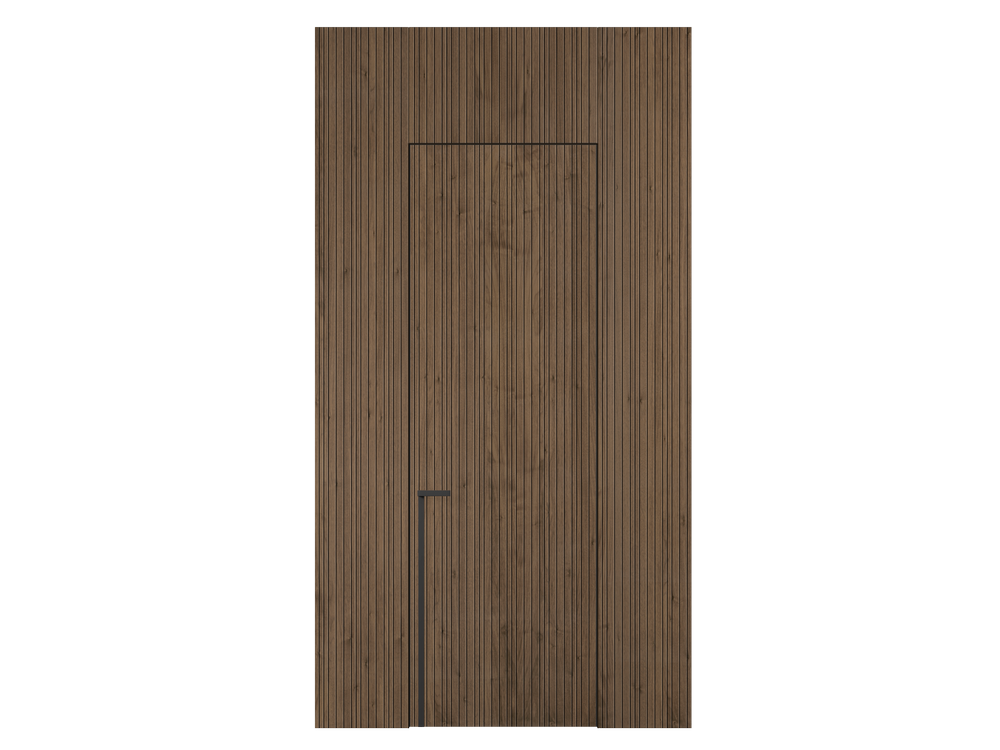 Селект — стеновые панели с фрезеровкой по натуральному шпону. Рельеф на поверхности создаёт игру света и тени, добавляя пространству динамичности и визуального объёма. Стеновые панели Селектв сочетании с дверьми из той же коллекции, повторяющими лаконичный дизайн, создают единое стилевое решение.