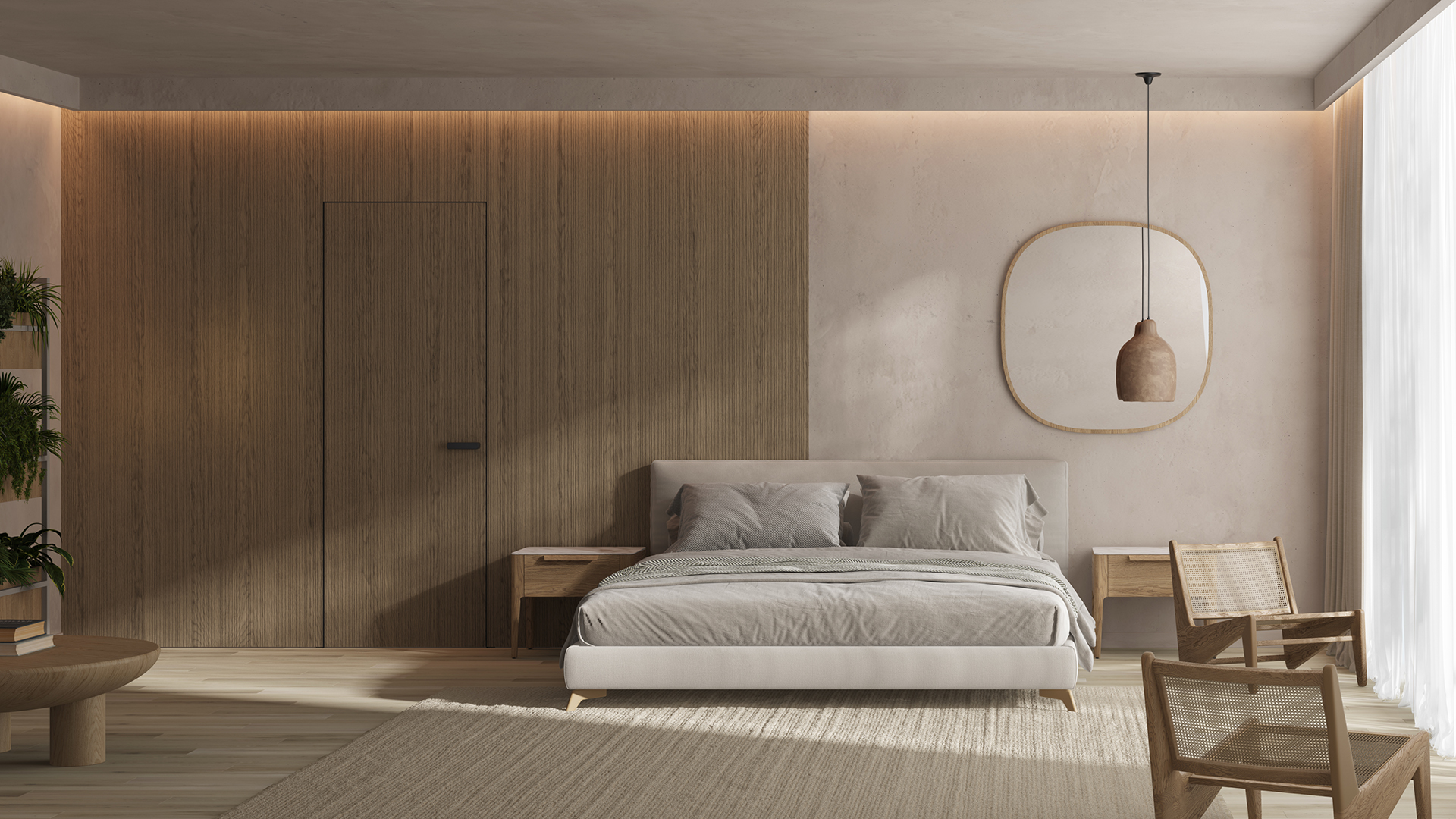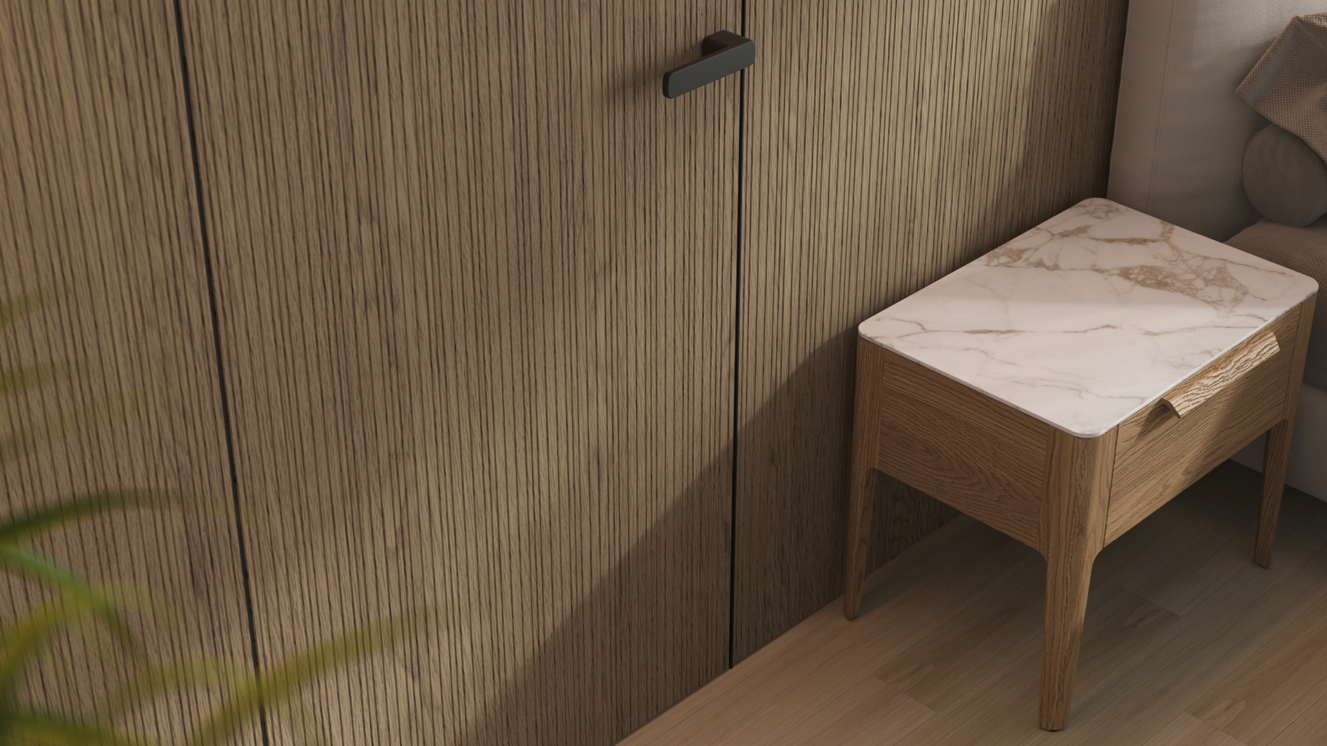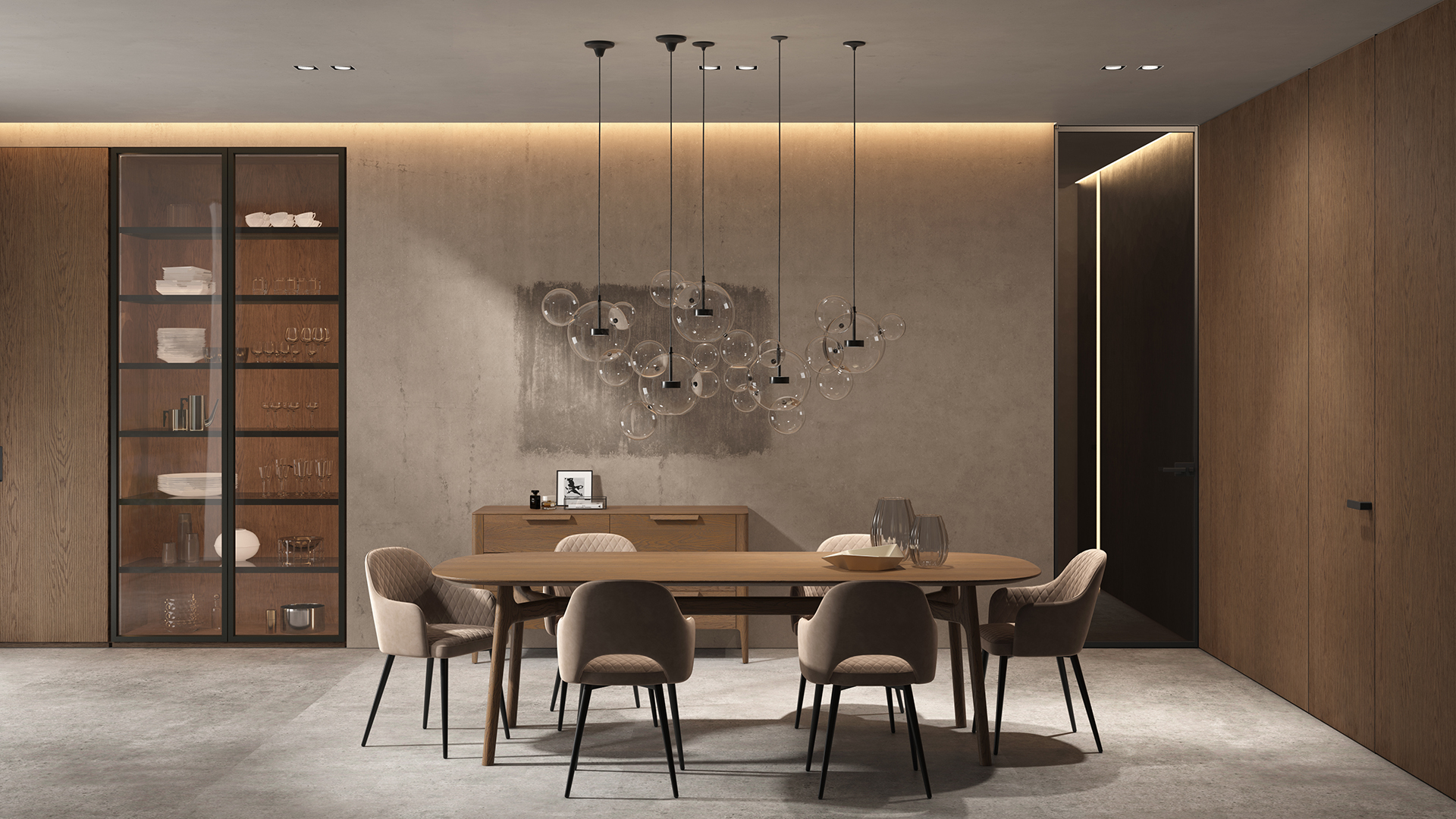 Селект — стеновые панели с фрезеровкой по натуральному шпону. Рельеф на поверхности создаёт игру света и тени, добавляя пространству динамичности и визуального объёма. Стеновые панели Селектв сочетании с дверьми из той же коллекции, повторяющими лаконичный дизайн, создают единое стилевое решение.
