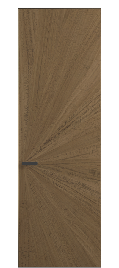 Полотно Рифт в скрытом алюминиевом коробе становится полноценным элементом декора. В коллекции представлено 9 моделей дверей в высоте до 3 метров. Рисунок раскладки шпона варьируется от простого до сложного. «Рубашка» для каждого полотна подбирается вручную по цвету, текстуре и фактуре.