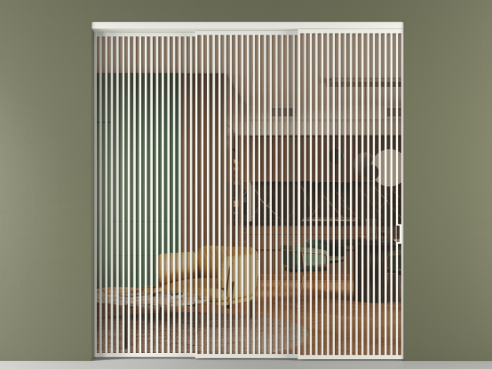 Во всех алюминиевых перегородках, независимо от типа установки, используется компланарный раздвижной механизм, благодаря которому декоративная крышка и полотно находятся в одной плоскости.